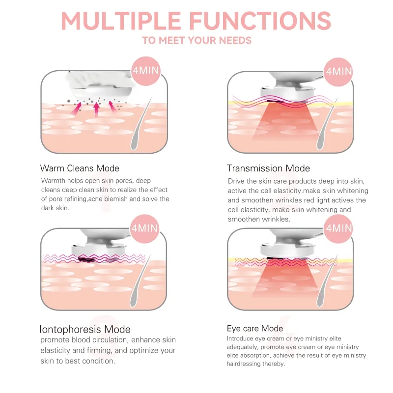 ± les ions avec vibrations sonores et microcourants augmentent la circulation sanguine et lissent les ridules et les ridules.
