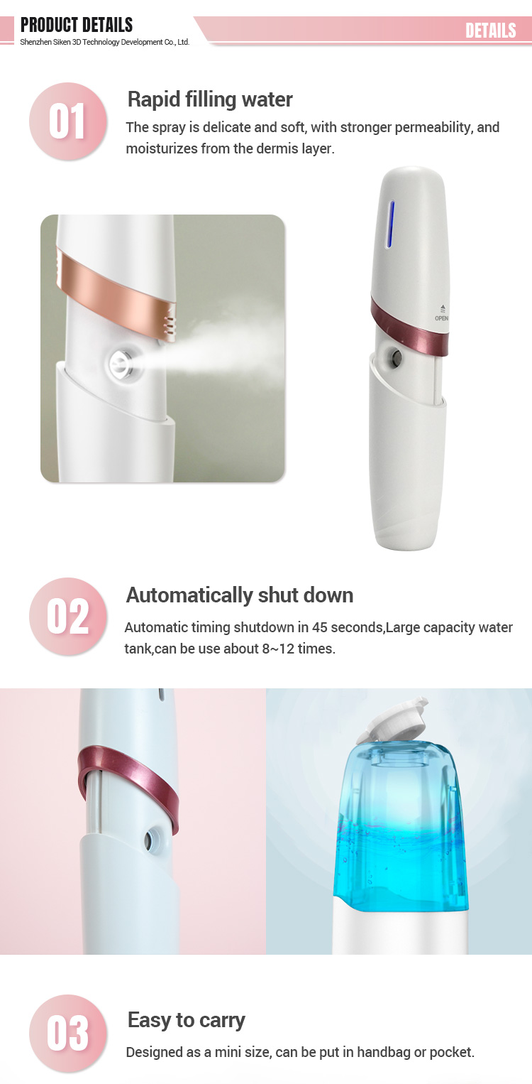 Siken 3D offre une garantie de 3 ans sur toutes les solutions Nano Face Mist Spray DEVICE, car nous croyons que le service après - vente pour nos clients peut fournir une coopération plus longue et plus stable.